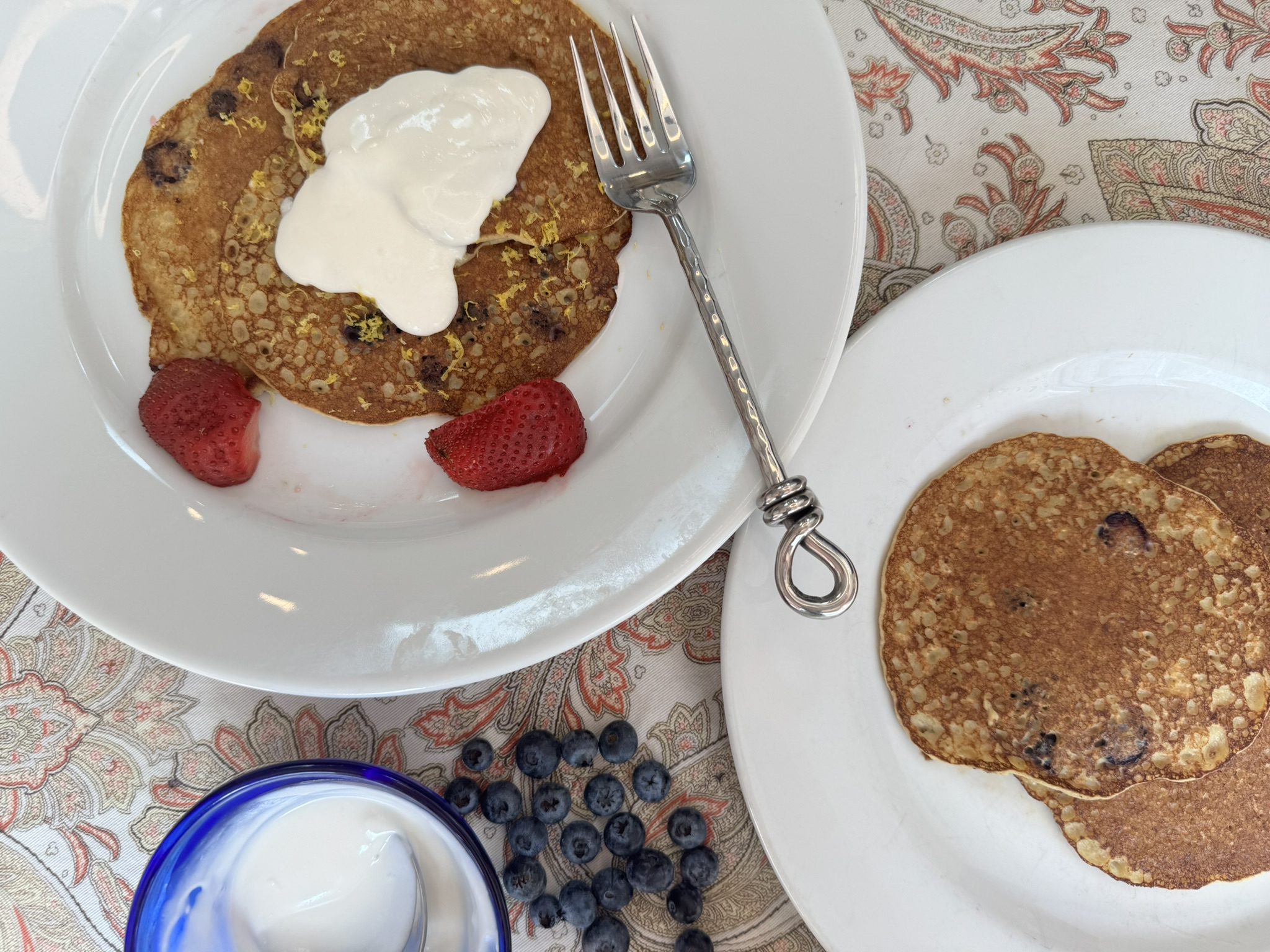 For your pup, serve the pancakes plain as shown below, or with a dollop of plain yogurt—no lemon zest. James T. says that’s perfect just the way it is!