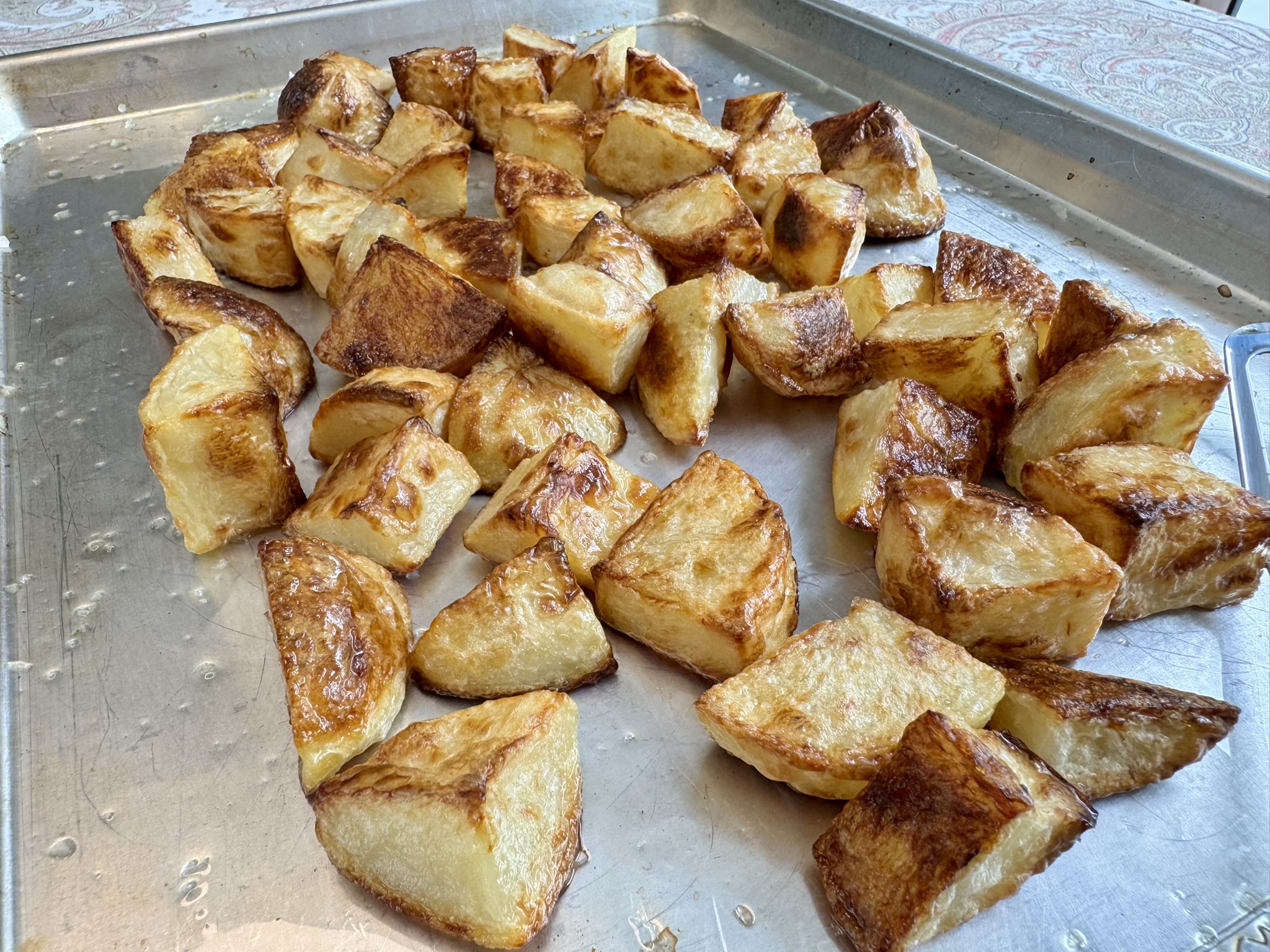These potatoes take just one extra step to get that perfect texture: double cooking. Boil first, roast after. That’s all it takes to get the crisp edges and fluffy middle everyone dreams about.